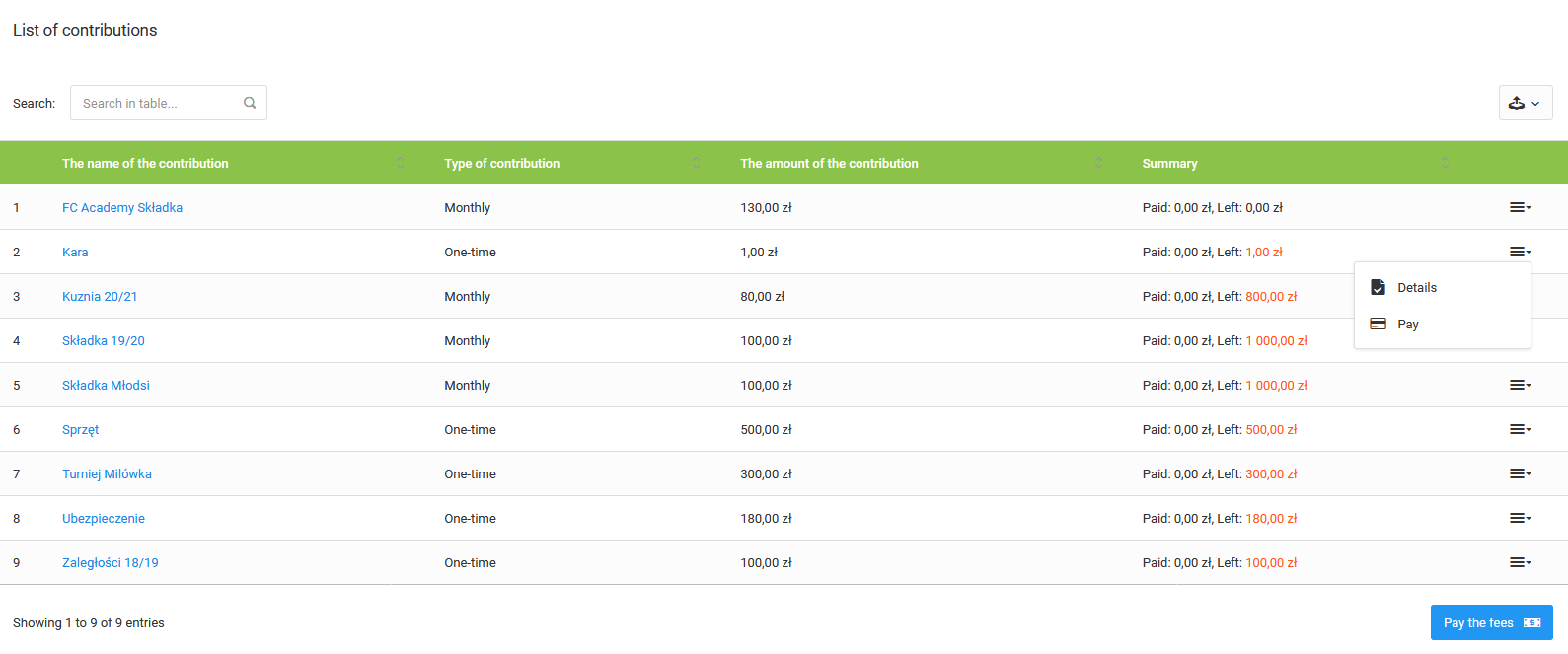У пользователя есть два варианта оплаты взноса через систему: быстрый и ручной / массовый. Быстрый заключается в выборе опции «оплата» в меню рядом с премией, которая позволит пользователю напрямую произвести оплату. Второй вариант - заплатить несколько взносов одновременно. Чтобы выбрать эту опцию, нажмите кнопку «оплатить несколько взносов». После нажатия выберите, какие взносы вы хотите оплатить. На следующем шаге введите суммы для отдельных взносов, месяцев и т. Д. Затем перейдите к платежу, выберите подходящий метод и сделайте перевод. Оплата также возможна с мобильного приложения.
